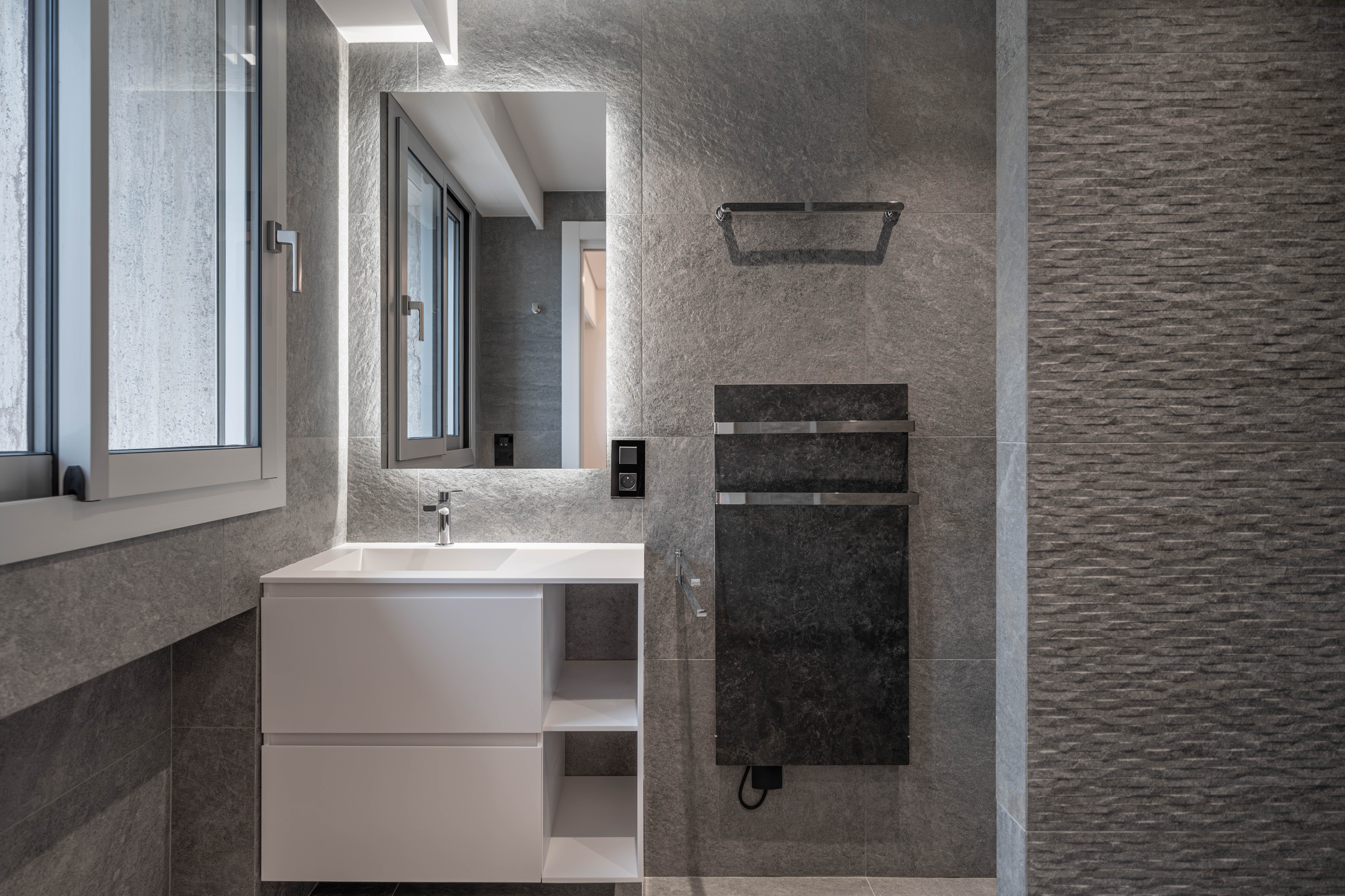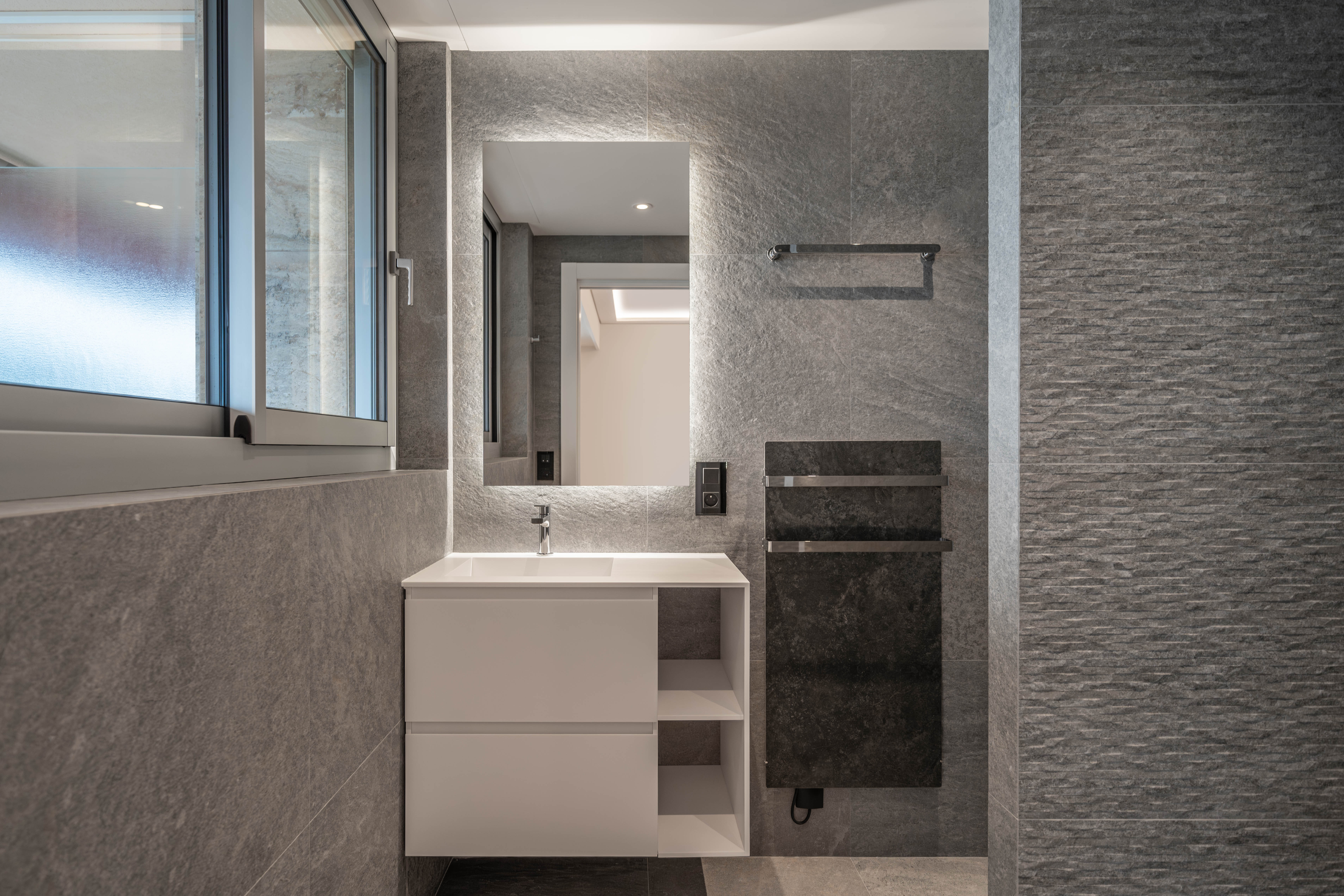 Démolition et curage complet, reprise des ouvrages de maçonnerie, réalisation des chapes, mise en œuvre des réseaux sanitaires, des installations de chauffage, climatisation et aéraulique, ainsi que des installations électriques CFO/CFA, puis pose des revêtements durs (carrelage, pierre) et des revêtements souples.