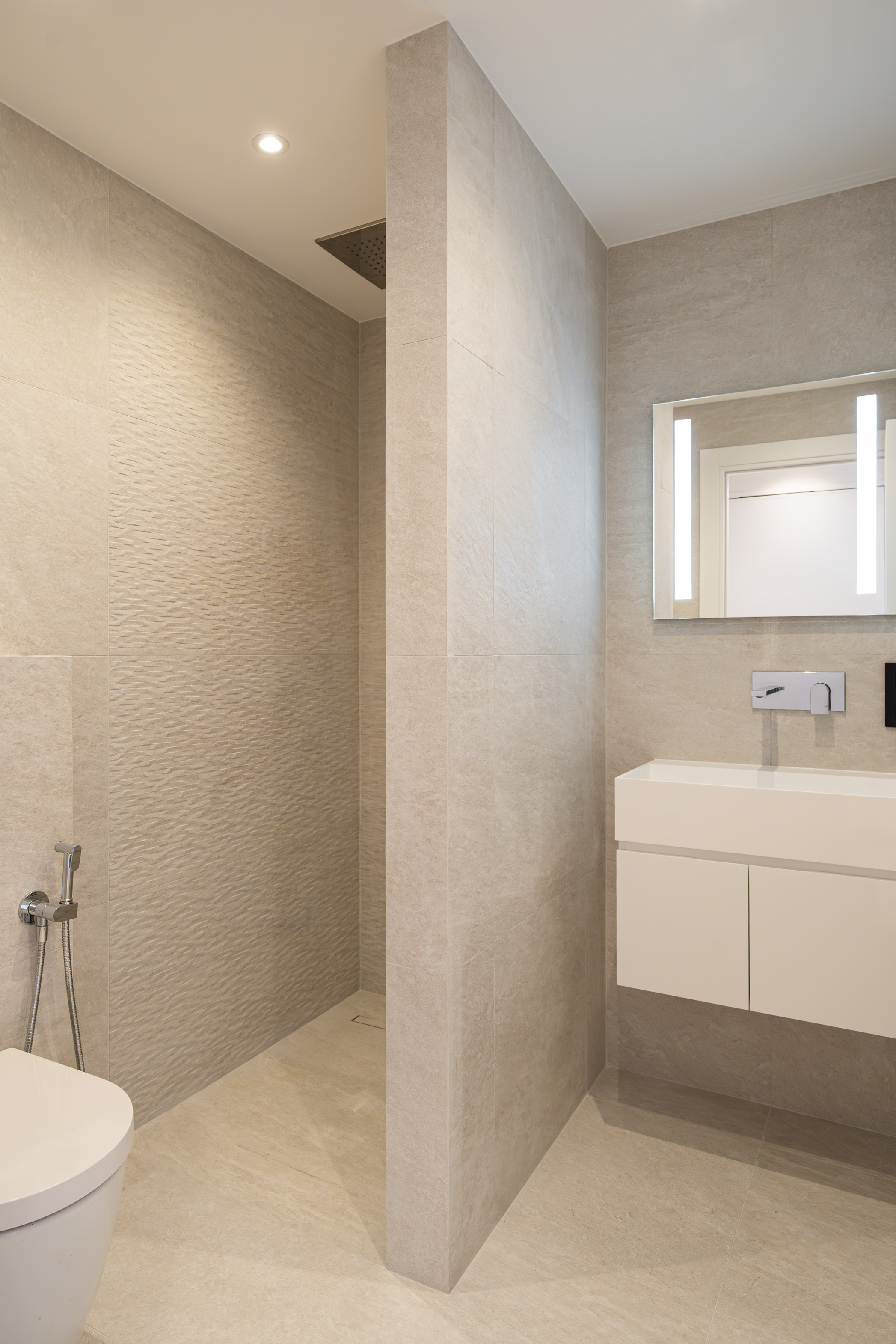 Démolition et curage complet, reprise des ouvrages de maçonnerie, réalisation des chapes, mise en œuvre des réseaux sanitaires, des installations de chauffage, climatisation et aéraulique, ainsi que des installations électriques CFO/CFA, puis pose des revêtements durs (carrelage, pierre) et des revêtements souple.